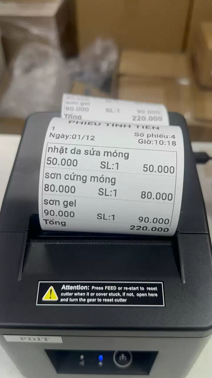 Công nghệ in nhiệt không cần mực, tiết kiệm chi phí, chuyên dùng cho quán ăn, nhà hàng, cafe, siêu thị mini, cửa hàng bán lẻ, quầy thu ngân.