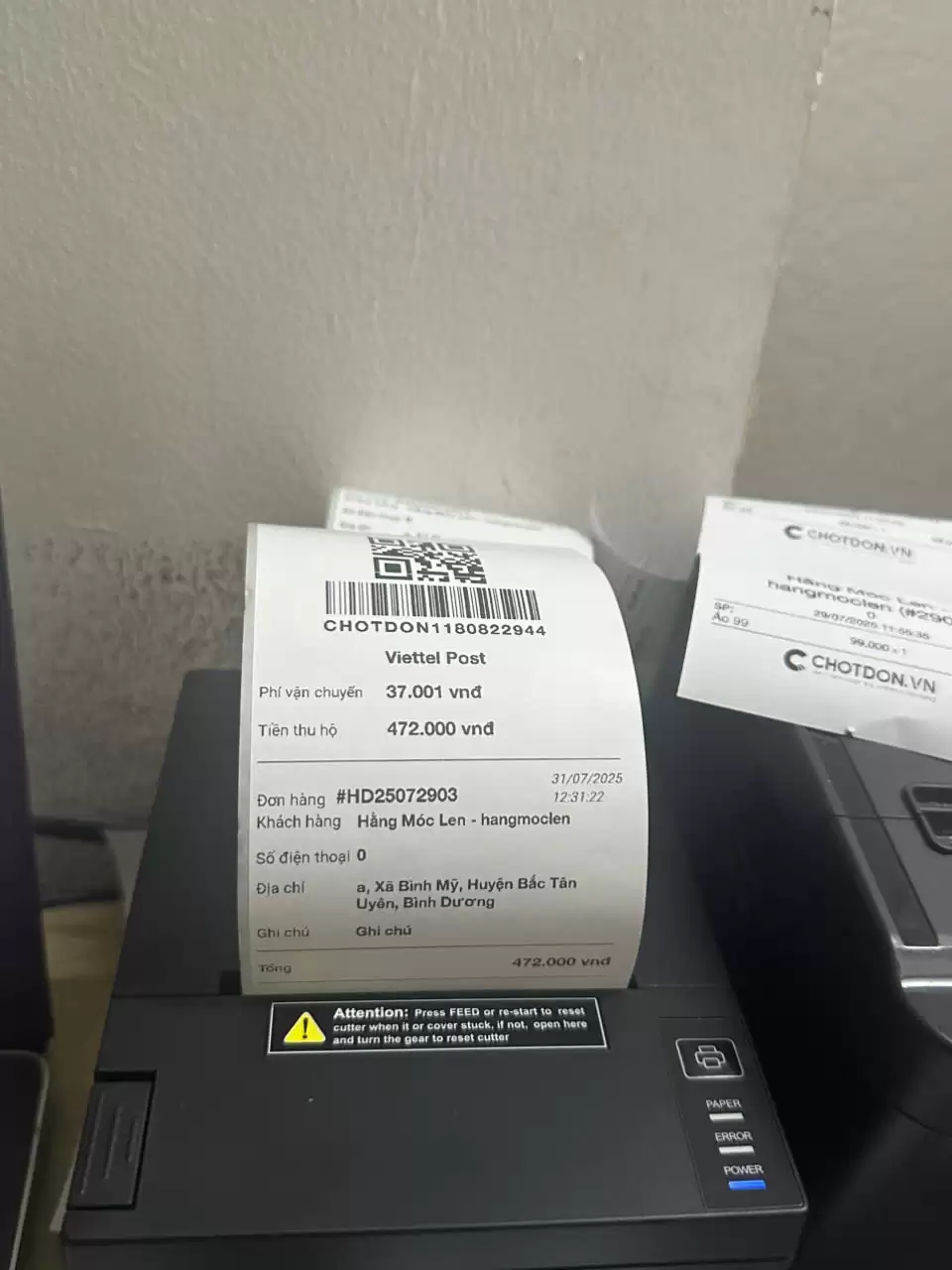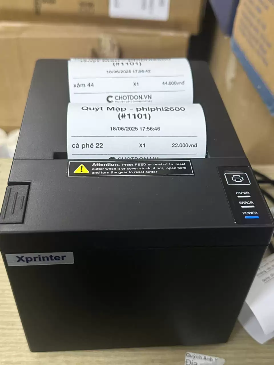 Hỗ trợ in: App Chotdon.vn, Mseller, KiotViet, Sapo, Ocha, Loyverse, Suno,…