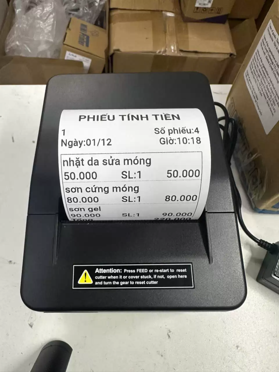 ✔️ Tốc độ in nhanh – ổn định: Phù hợp shop đông khách, giờ cao điểm