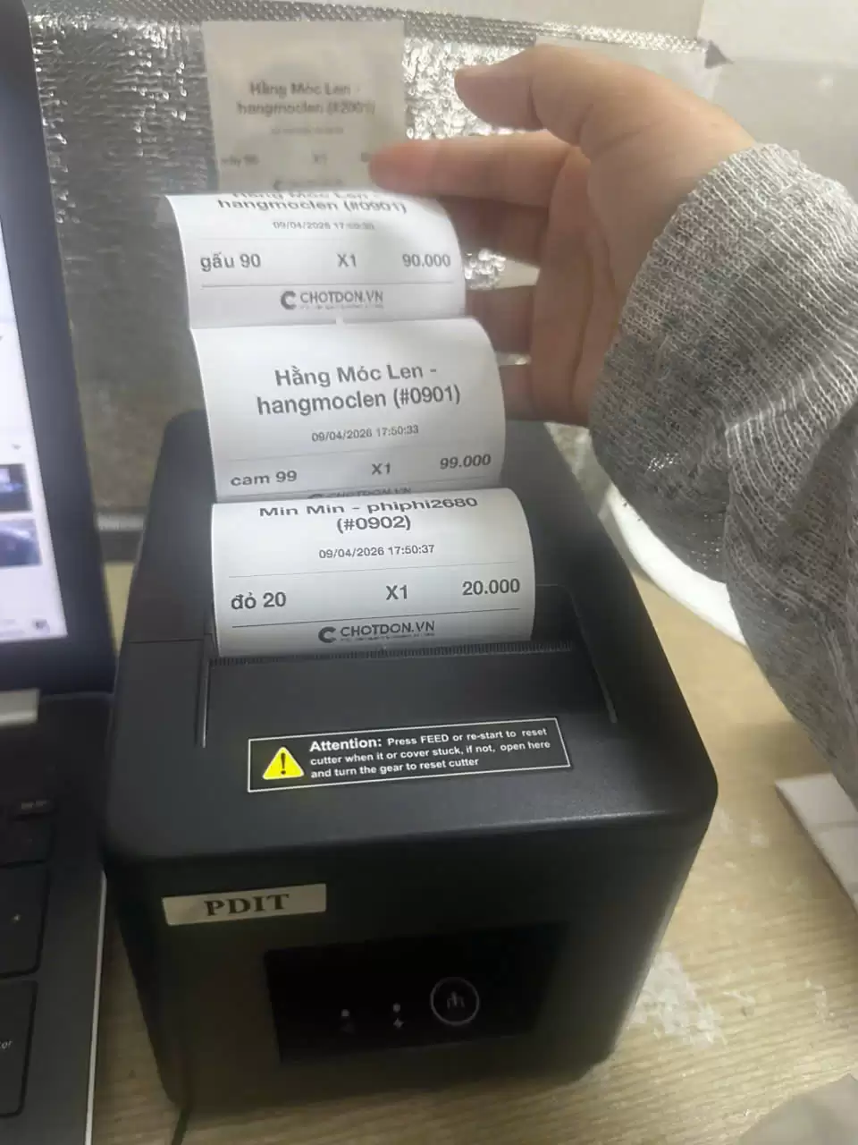 Máy in bình luận Wifi không dây Pdit PD805KW là thiết bị hỗ trợ bán hàng livestream cực kỳ hiệu quả. Máy giúp tự động in comment khách hàng, đơn hàng ngay khi phát sinh, giúp shop xử lý nhanh – chính xác – không sót đơn.