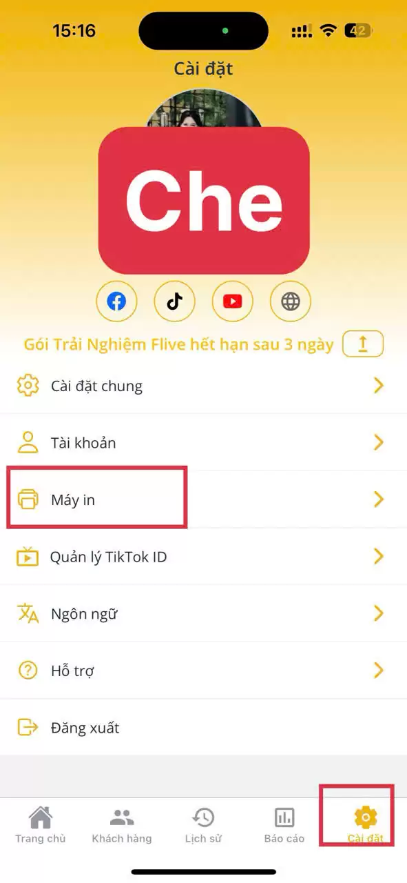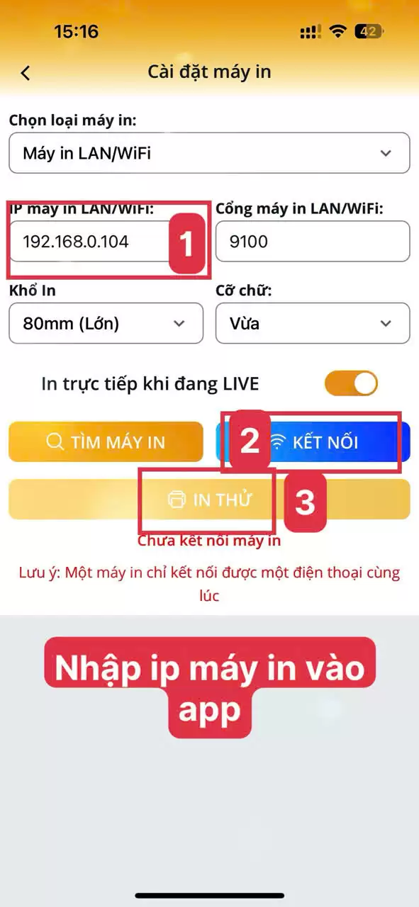 Trên phần mềm Flive, chọn “Cài đặt máy in” → thêm Flive Q822 (LAN).