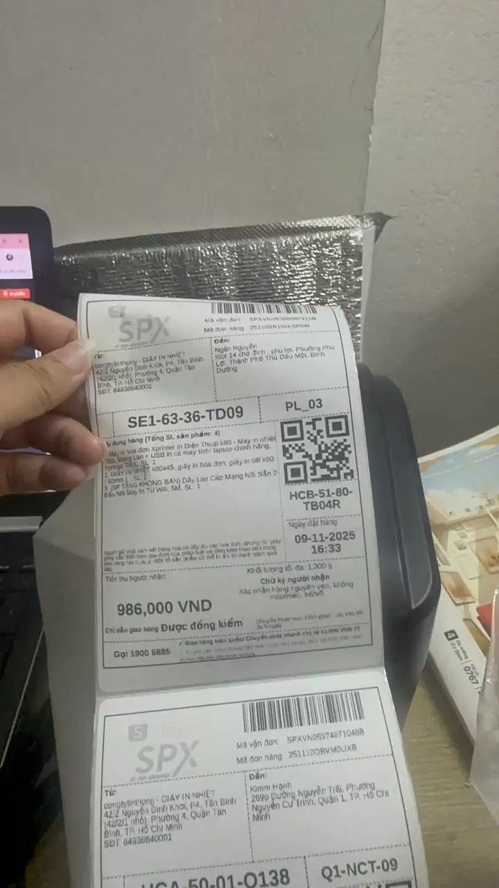 In tem giao nhận, phiếu đóng gói, tem quản lý hàng hóa, mã QR.