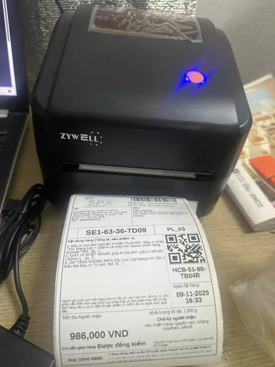 Máy in đơn hàng Zywell ZY4600 USB là dòng máy in tem nhãn nhiệt cao cấp, chuyên dùng để in đơn hàng, in vận đơn, in mã vạch từ các sàn thương mại điện tử như Viettel Post, GHN, GHTK, Shopee, TikTok Shop.