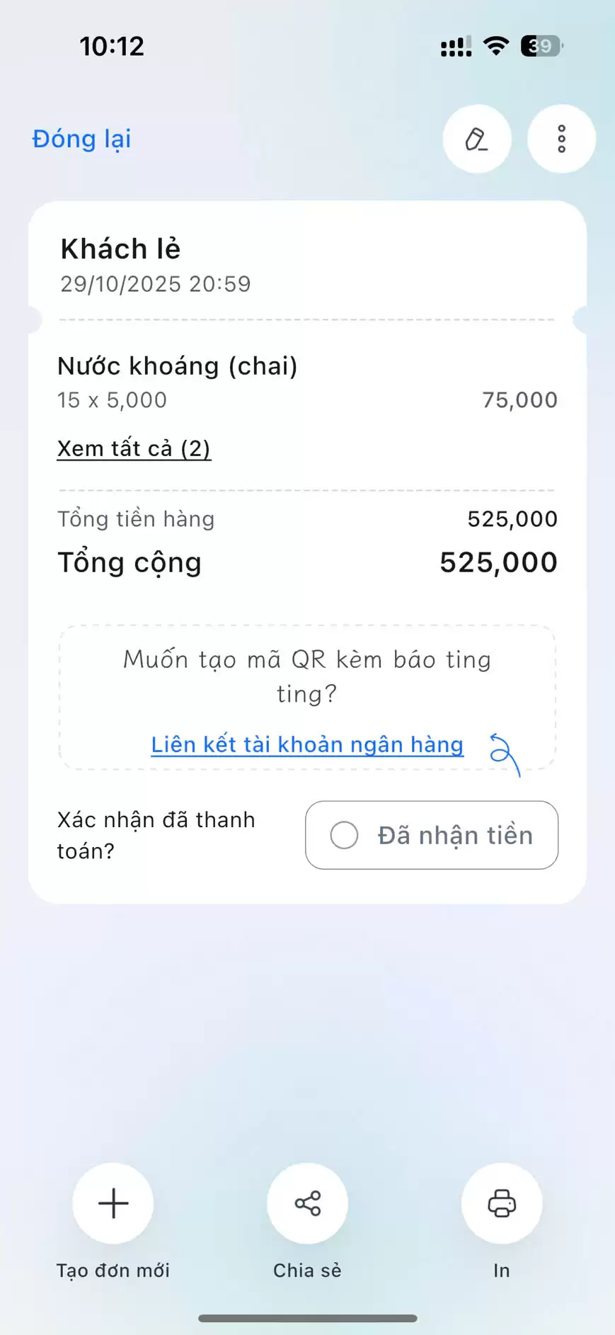 Shipper, nhân viên giao hàng cần in hóa đơn tại chỗ.