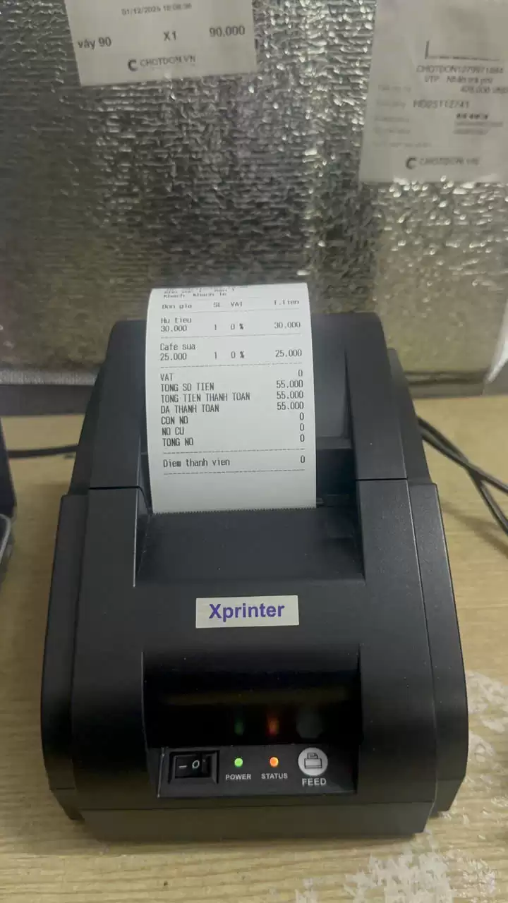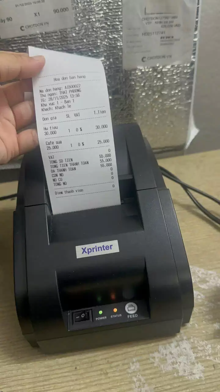 Máy in hoá đơn Bluetooth Xprinter K58 là dòng máy in nhiệt khổ 58mm, chuyên dùng để in hoá đơn trực tiếp từ Phần mềm Aibit trên điện thoại Android, iOS và máy tính. Sản phẩm phù hợp cho hộ kinh doanh, quán ăn, cafe, tạp hoá, shop bán lẻ, nail – spa cần in bill nhanh, gọn, không dây.