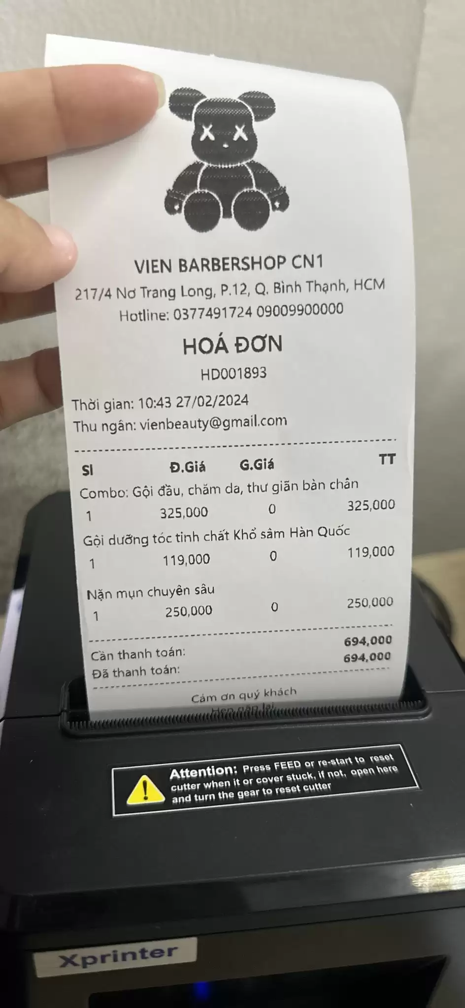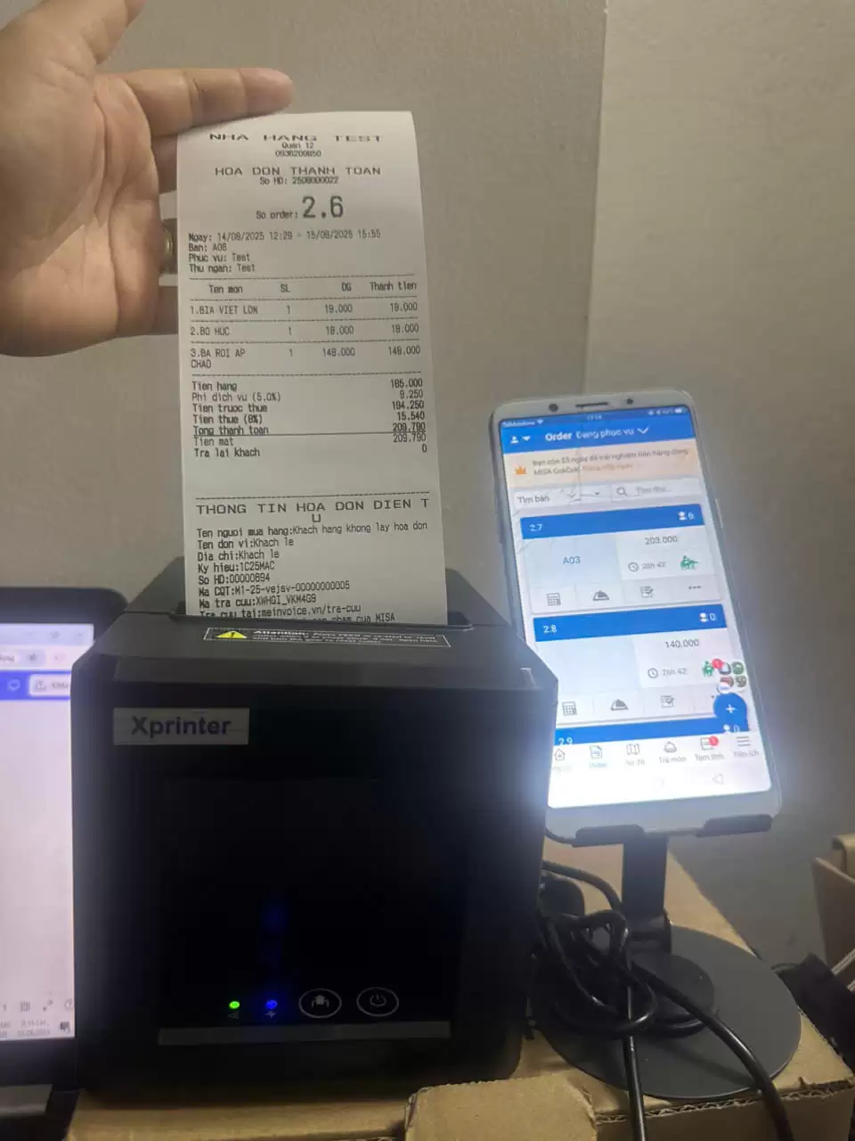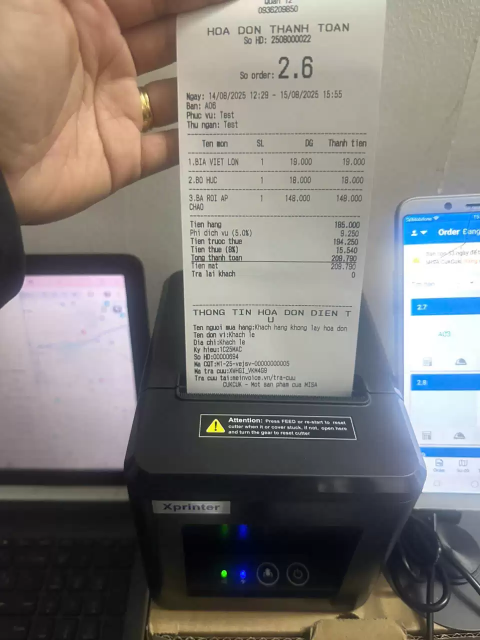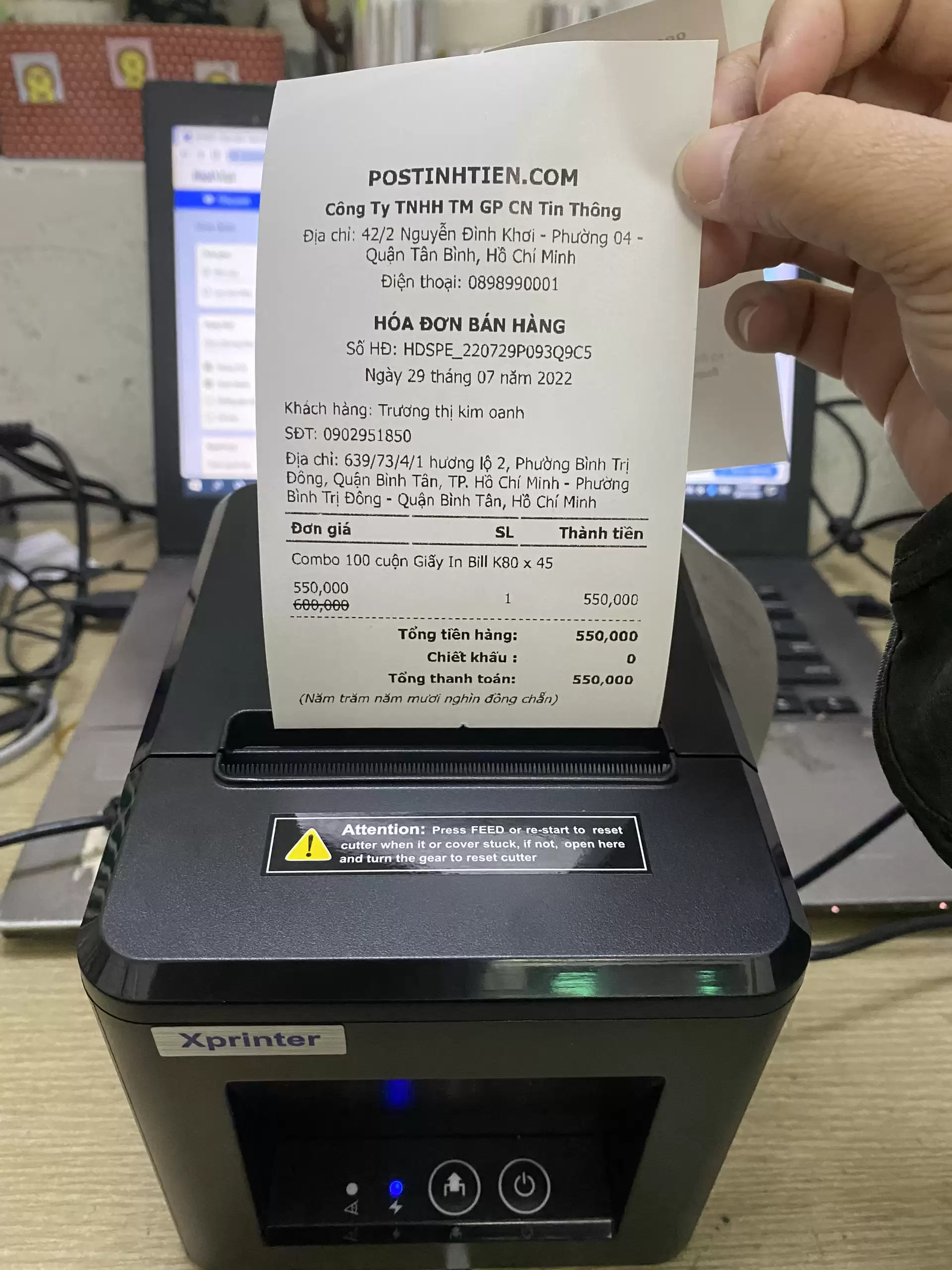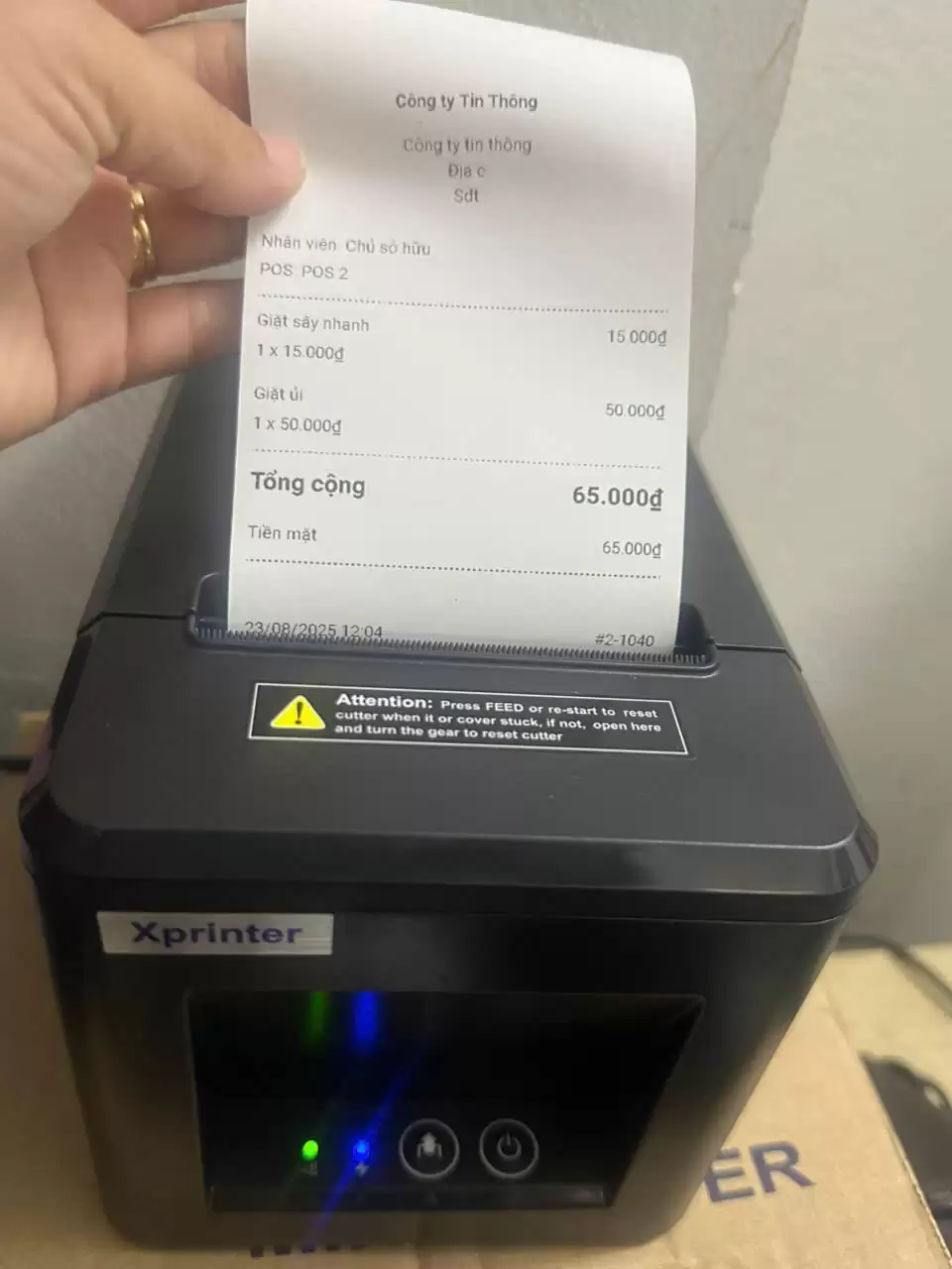 In thử hóa đơn để kiểm tra tốc độ và tính năng cắt giấy tự động.