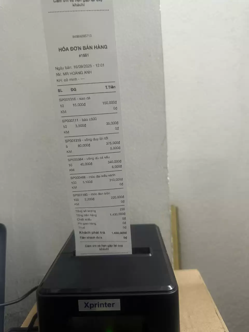 In bill bán hàng trực tiếp từ điện thoại hoặc máy tính.