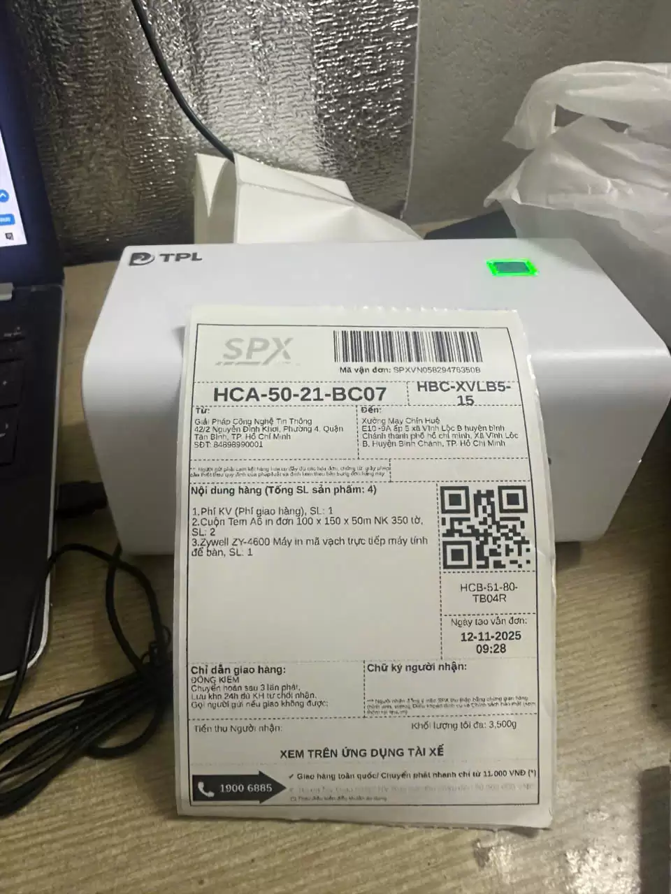 Máy sẽ in tem nhanh, rõ nét, không cần mực – tiết kiệm và tiện lợi.